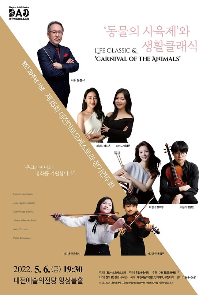창단20주년을 기념하며 가정의 달을 맞이하여대전아트오케스트라가 온 가족이 즐길 수 있는 프로그램으로 연주회를 개최합니다~