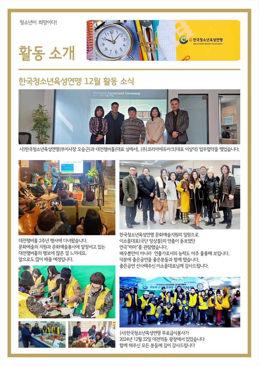 (사)한국청소년육성연맹 2024년 12월 소식