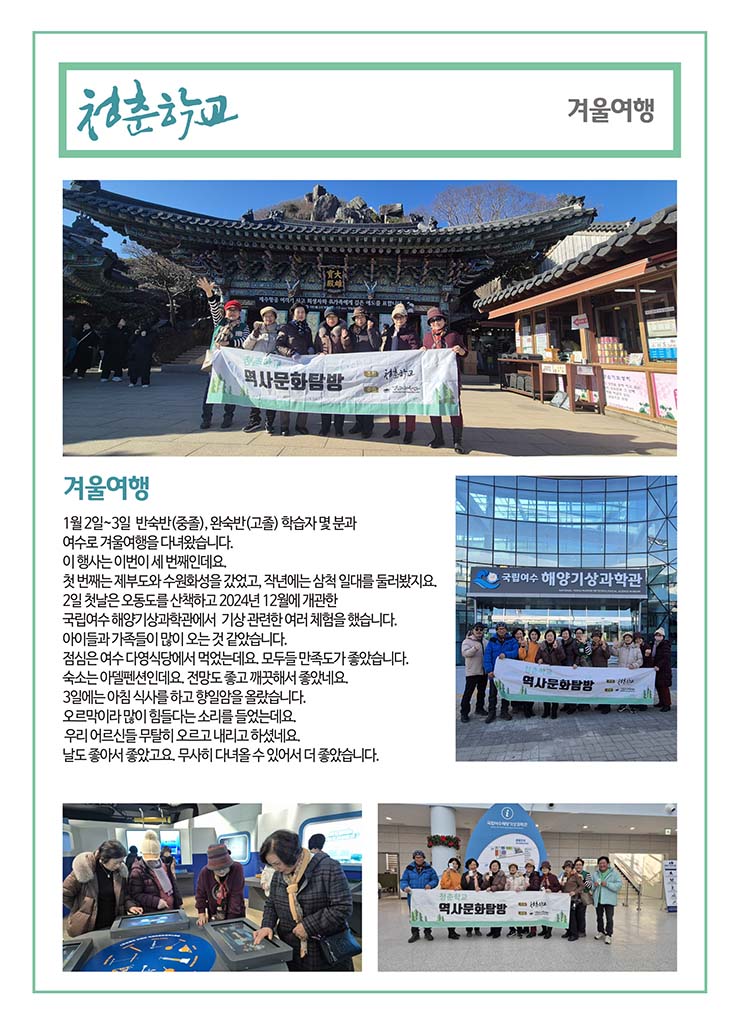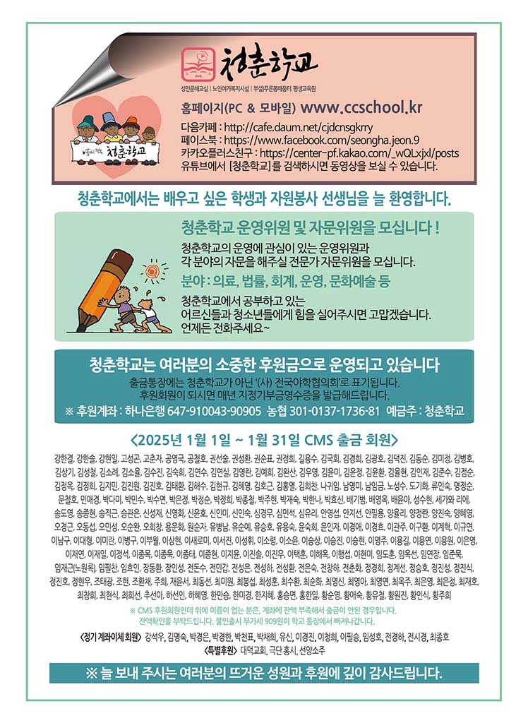 청춘학교 2025년 1월 소식