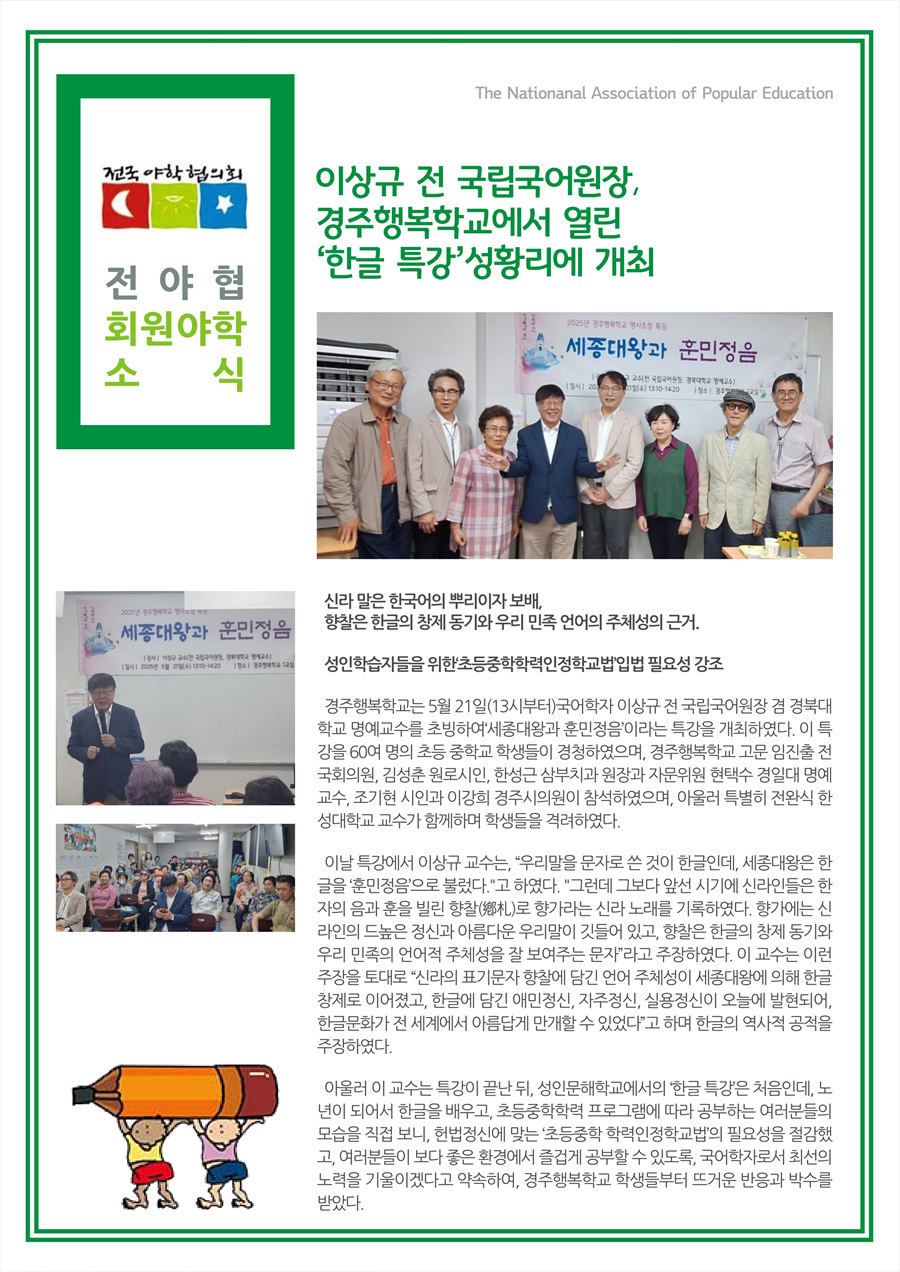 (사)전국야학협의회 소식 '광야' 2025년 5월
