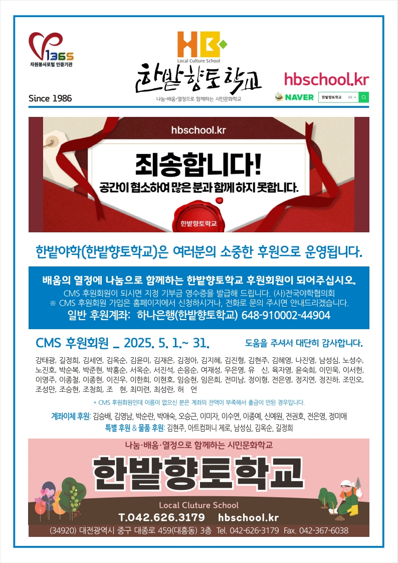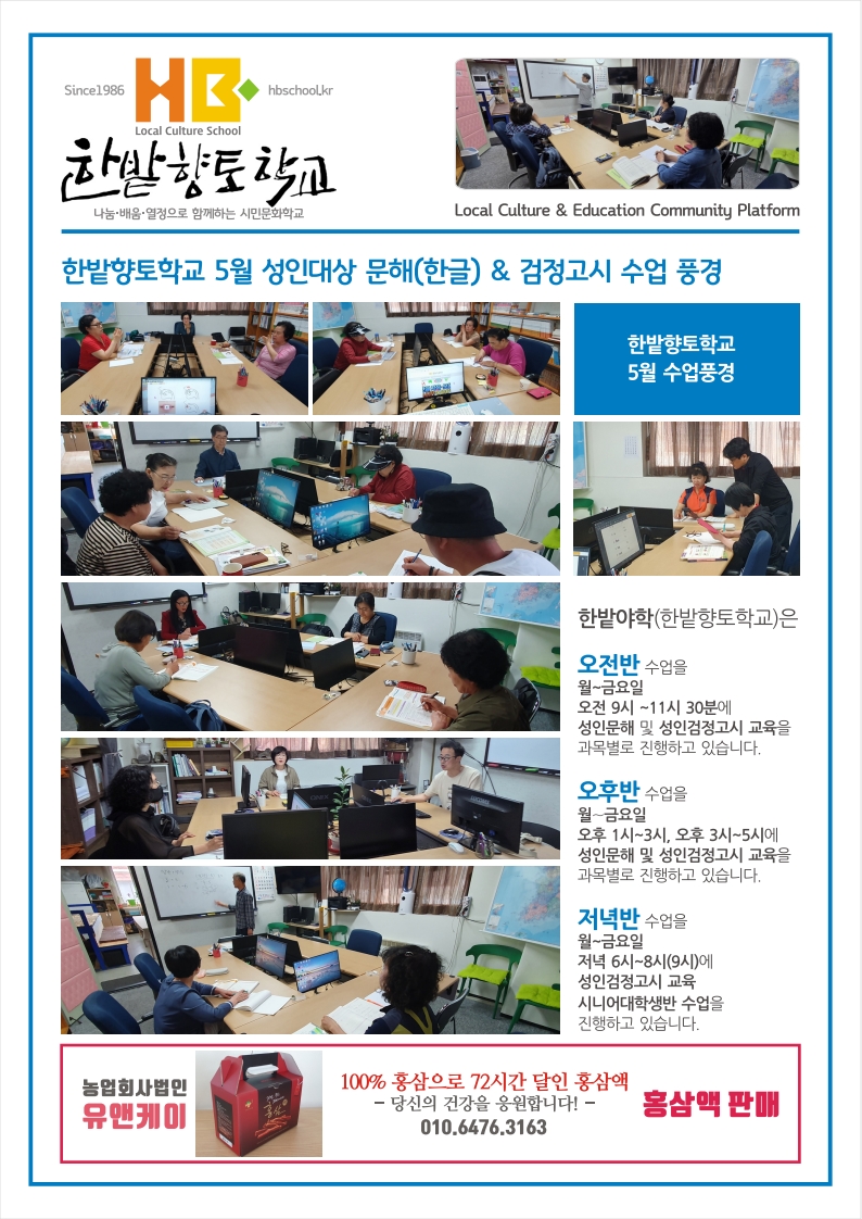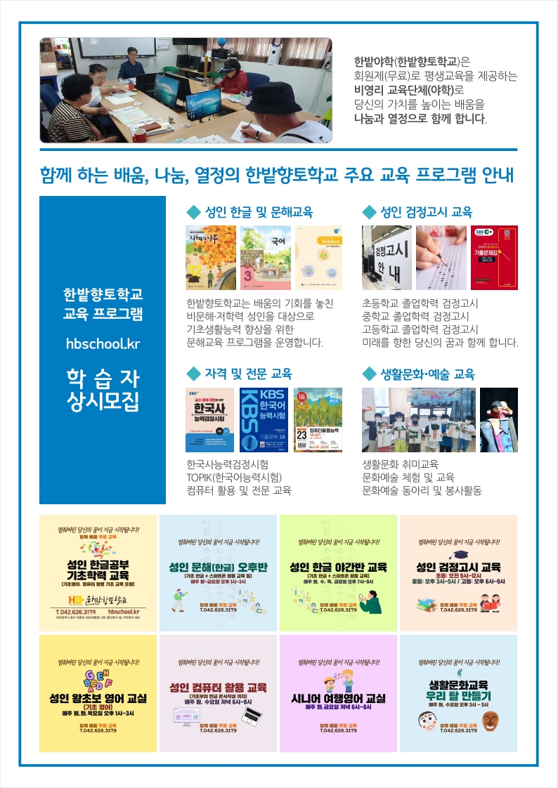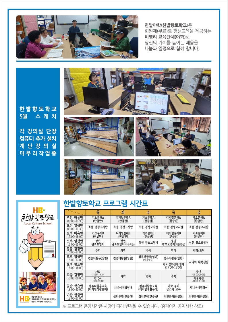 대전야학 한밭향토학교 2025년 5월 소식 _ 성인문해(한글)교육, 성인검정고시교육, 컴퓨터활용교육