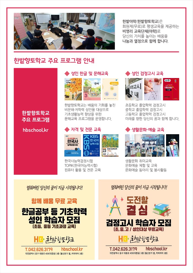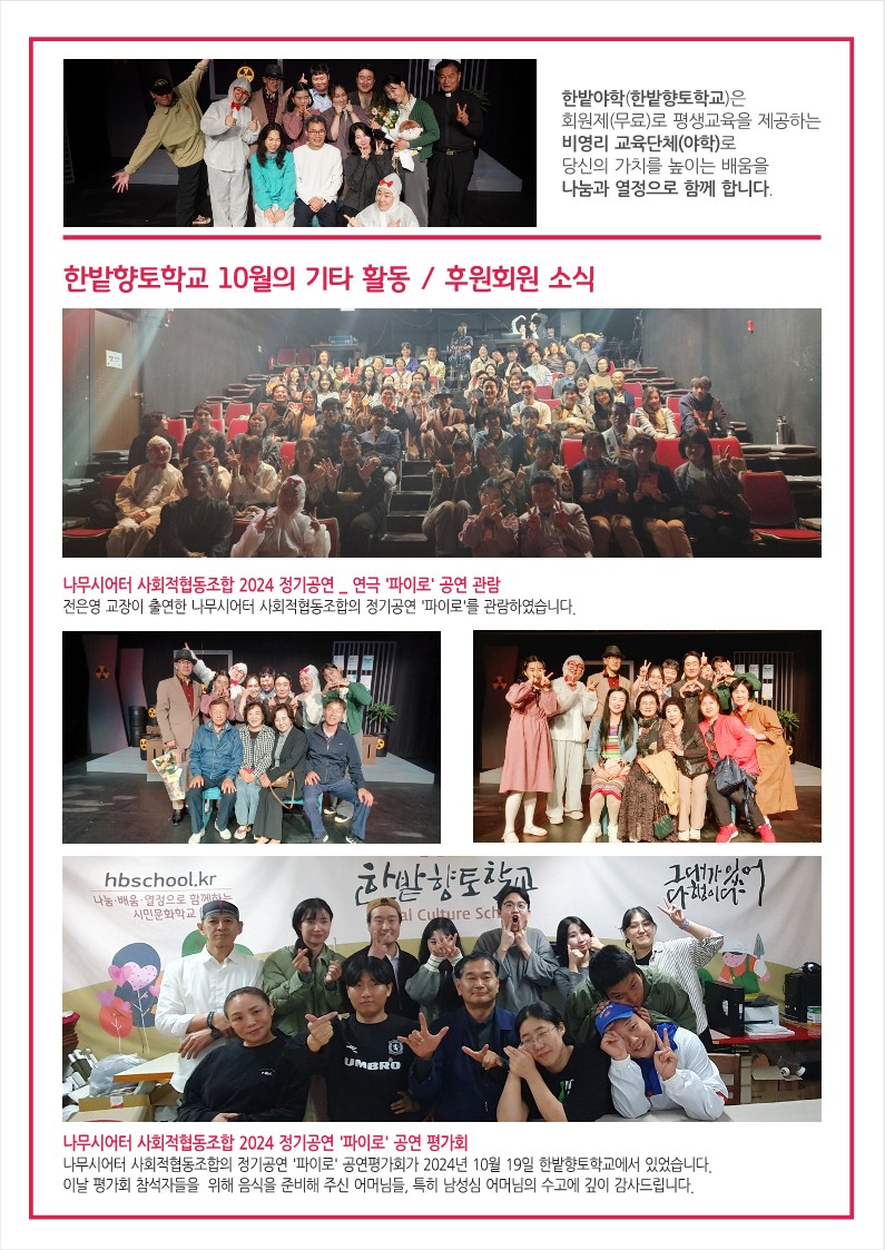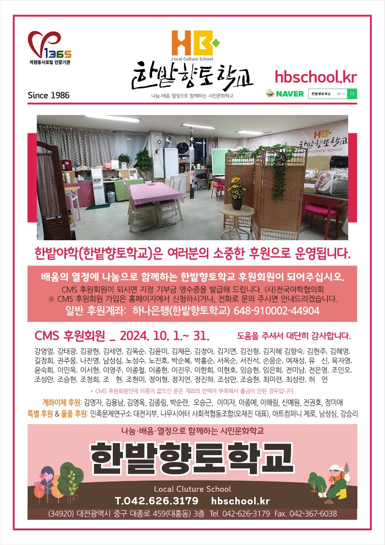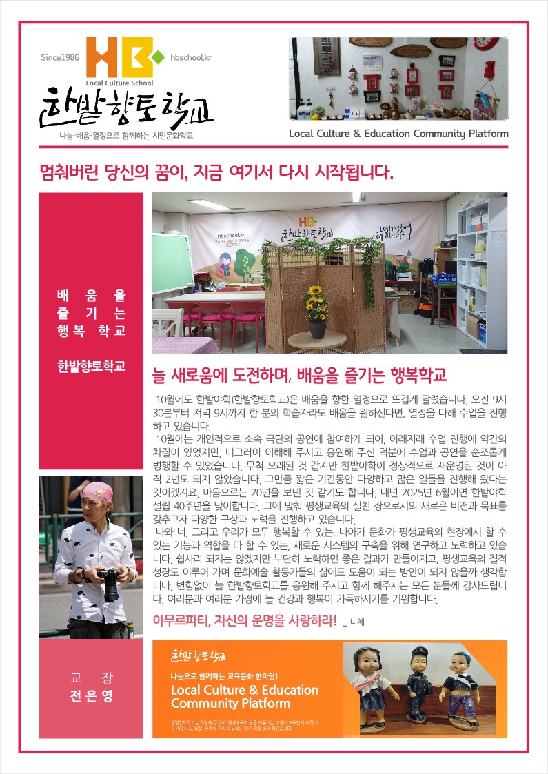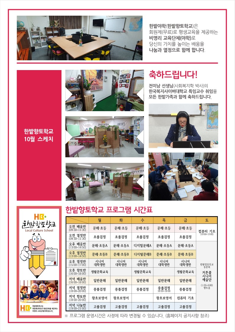 대전야학 한밭향토학교 2024년 10월 소식