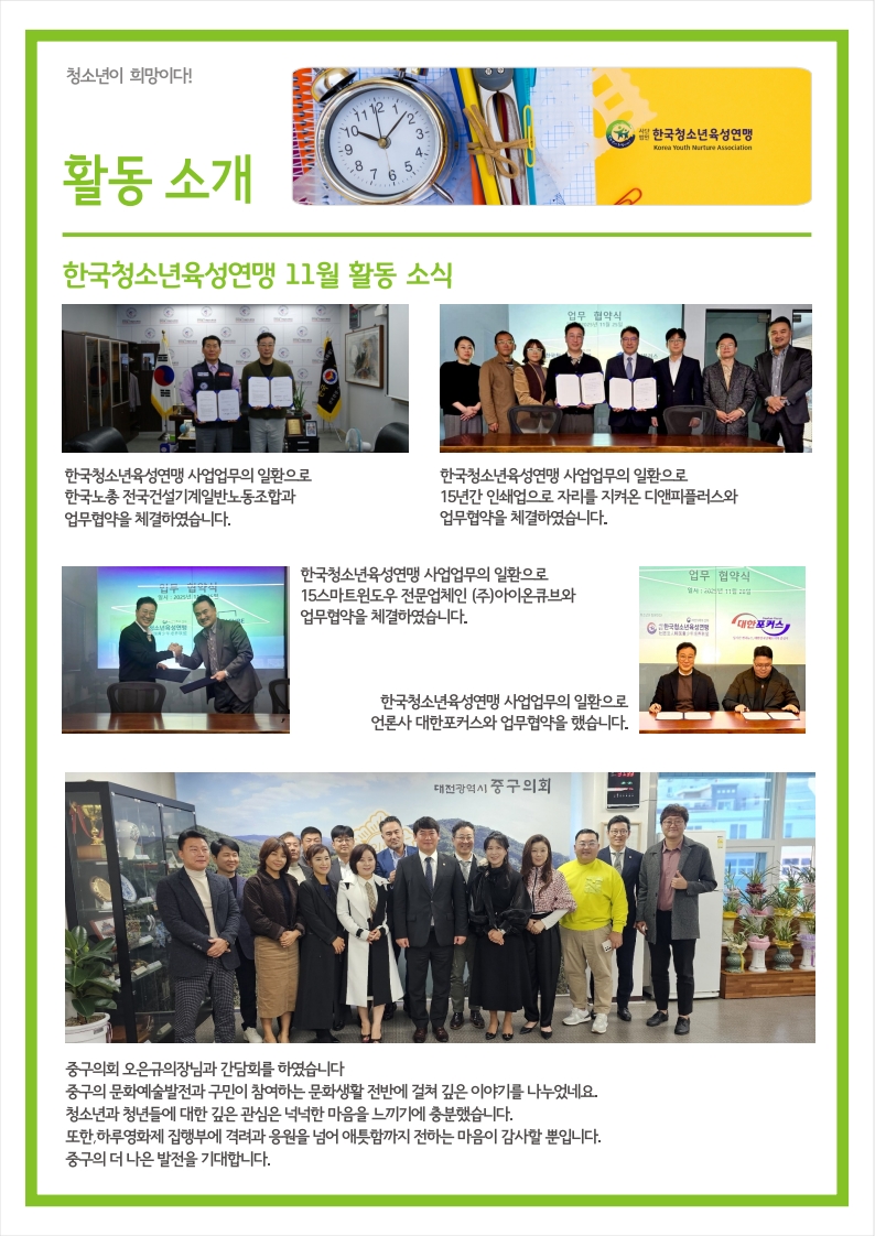 (사)한국청소년육성연맹 소식 _ 2024년 11월