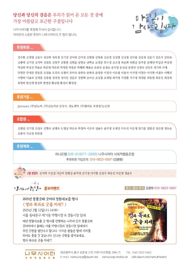 나무시어터 사회적협동조합 2025년 2월 소식