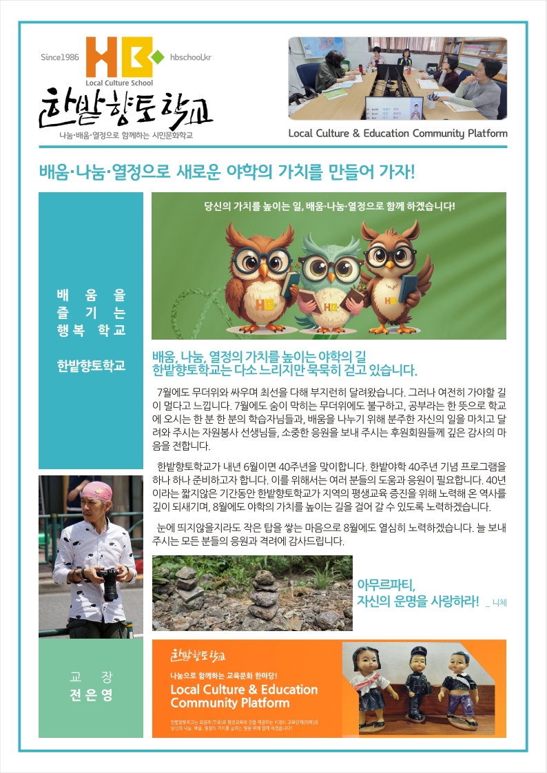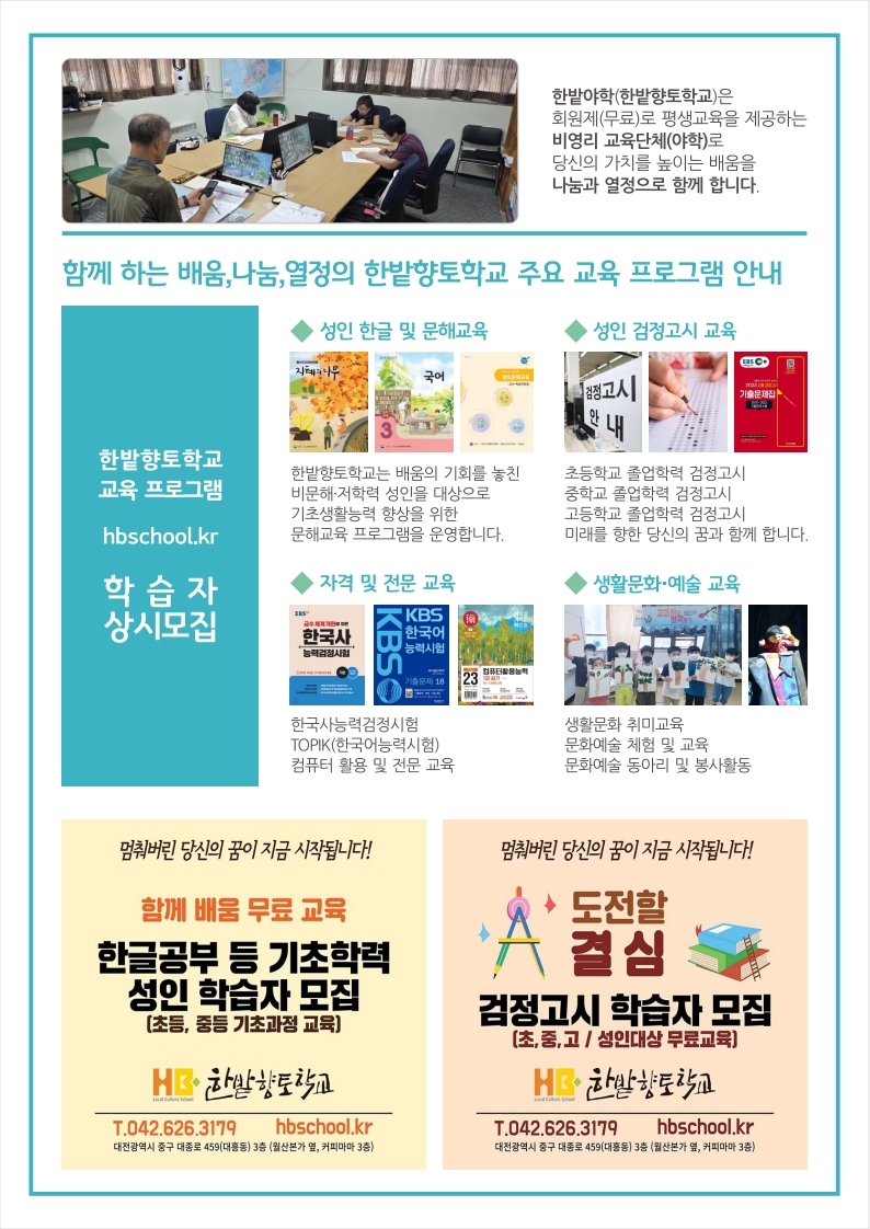 대전야학 한밭향토학교 2025년 7월 소식 _ 대전성인한글교육, 성인검정고시교육,컴퓨터활용교육,생활문해교육