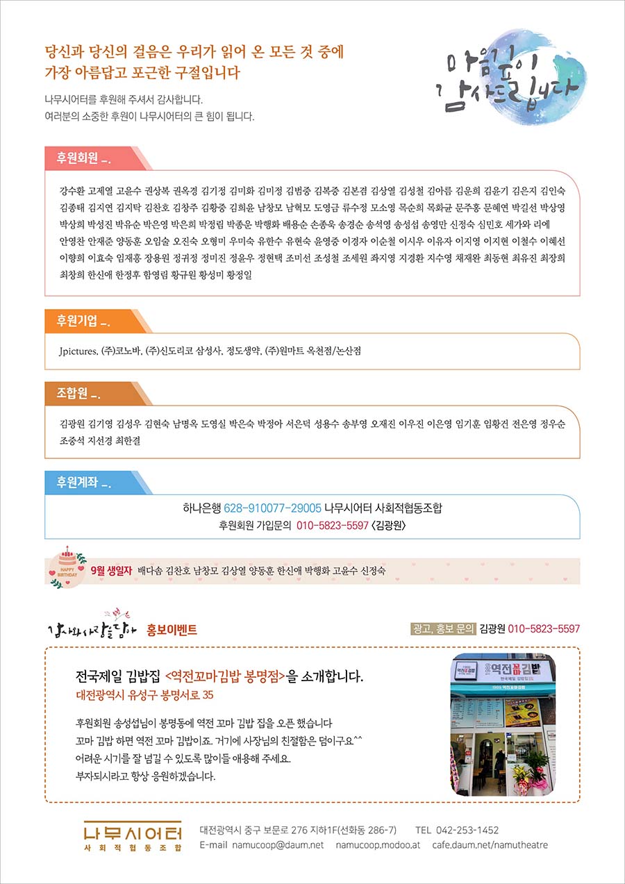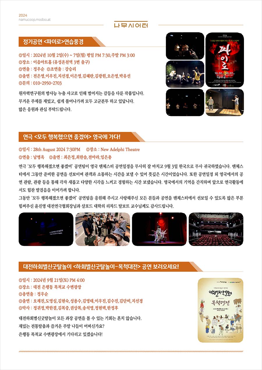 대전연극 대전공연 _ 나무시어터 사회적협동조합 2024년 9월 소식