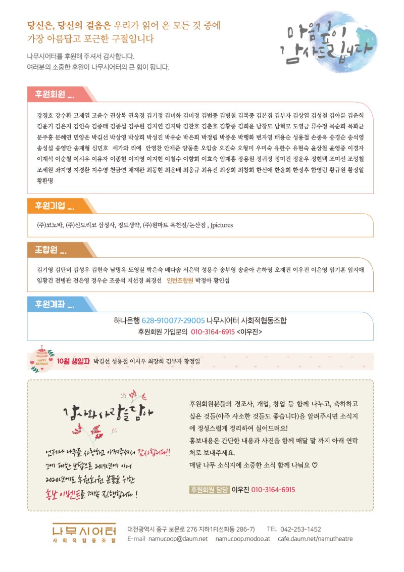 나무시어터 사회적협동조합 2020년 10월 소식