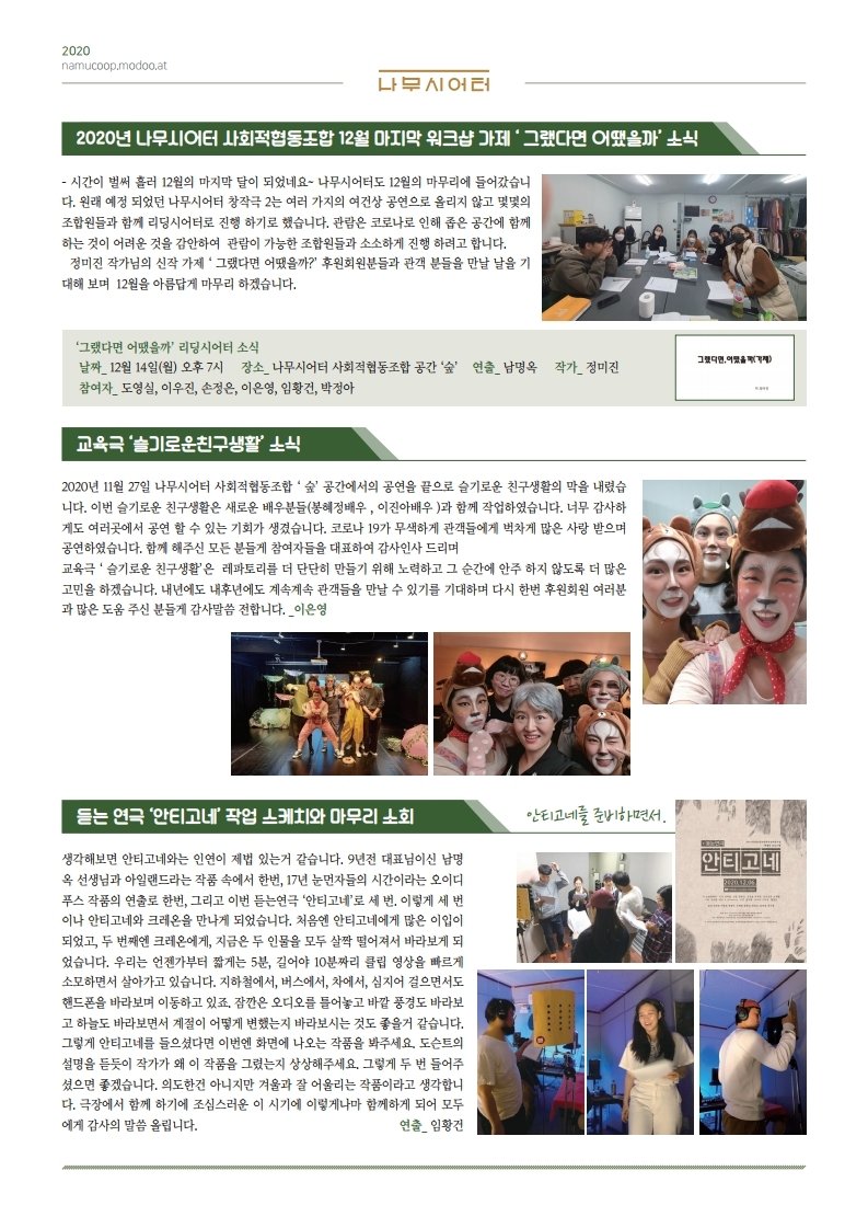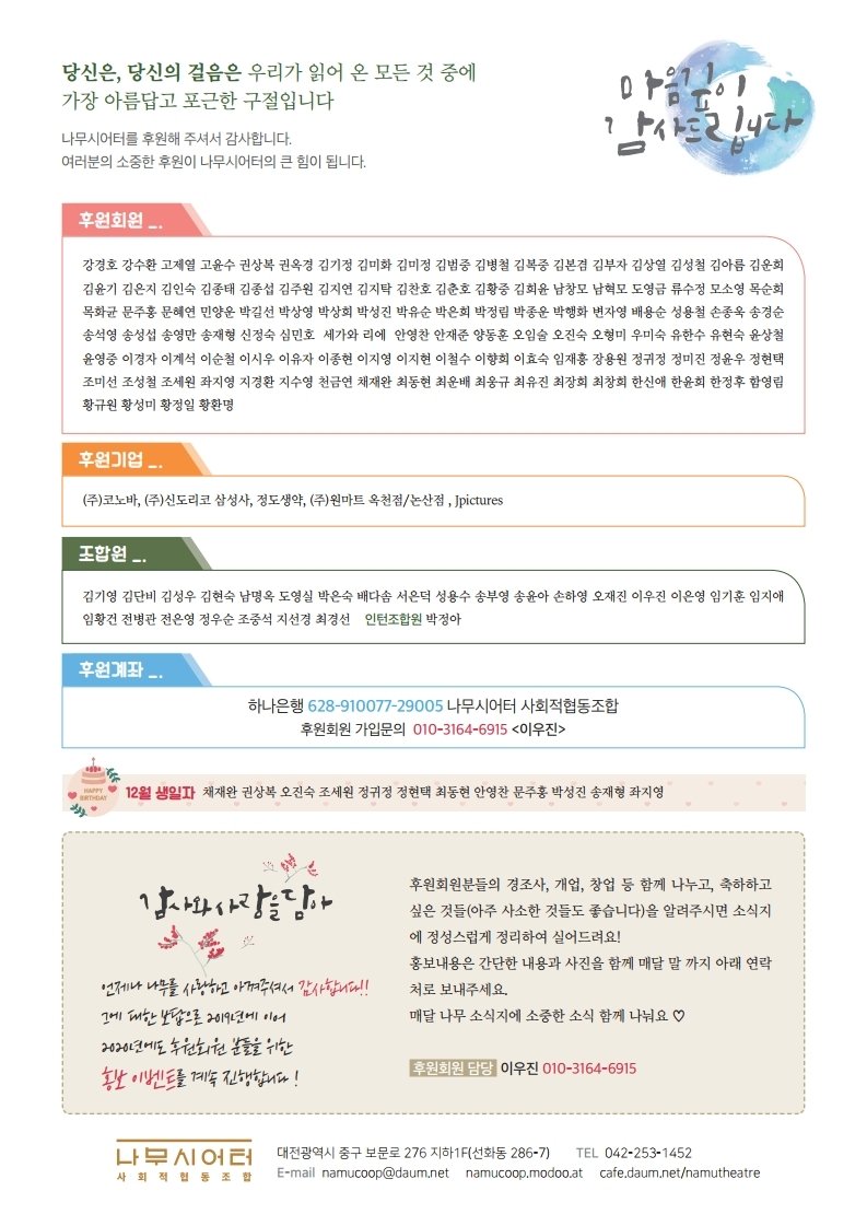 나무시어터 사회적협동조합 2020년 12월 소식