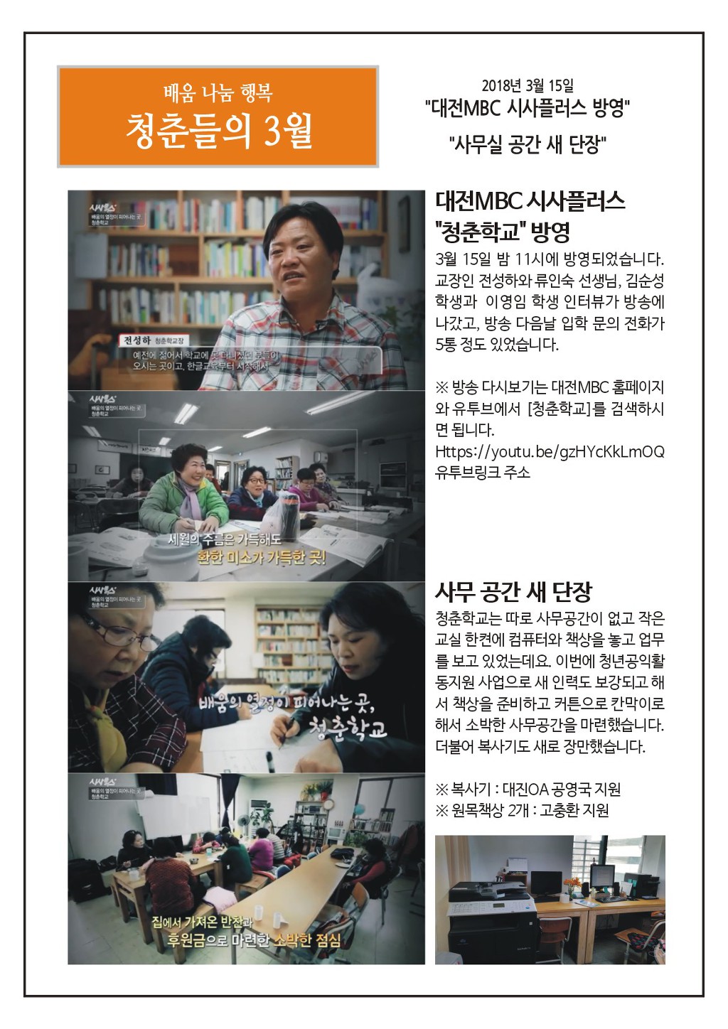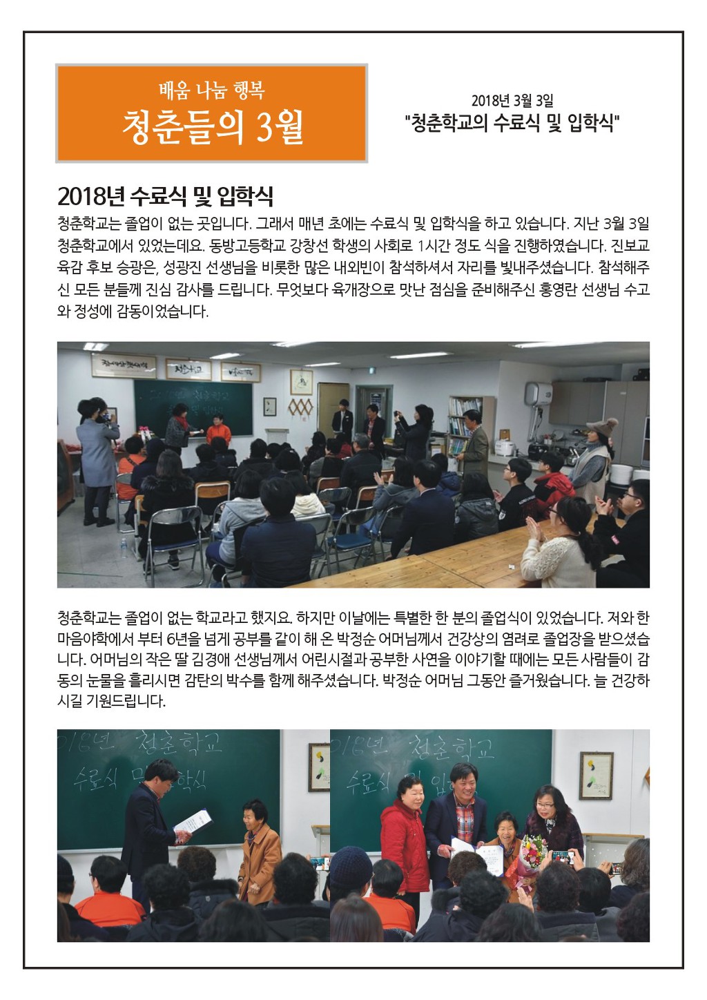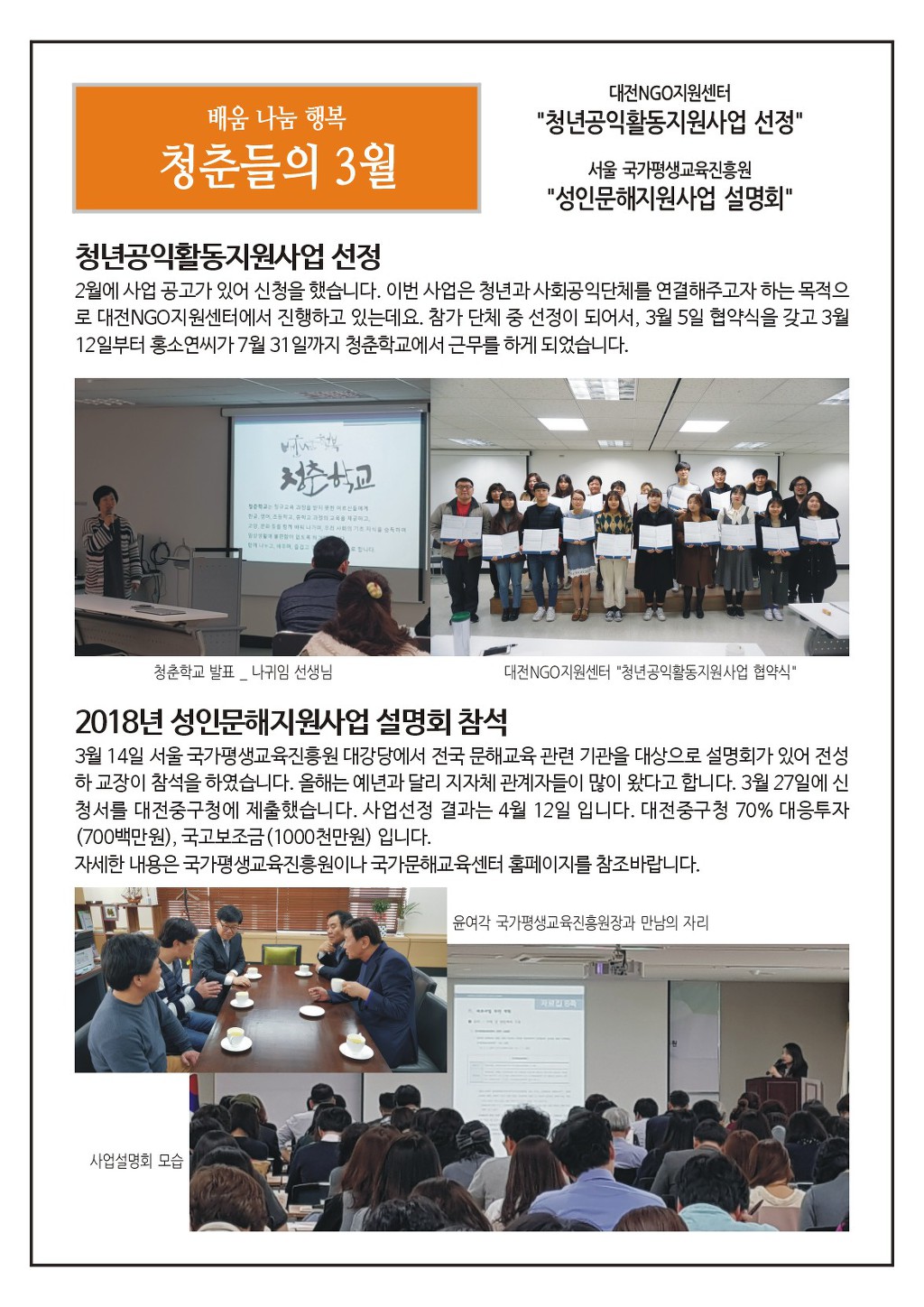 청춘학교 2018년 3월 소식