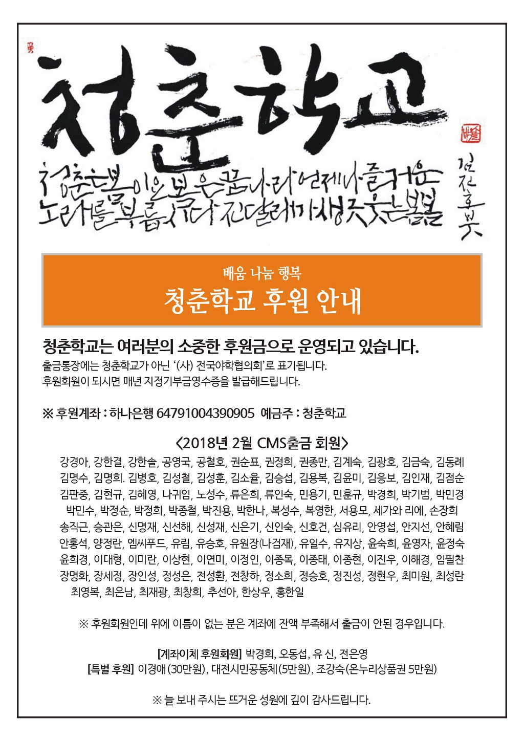 청춘학교 2018년 1월 소식