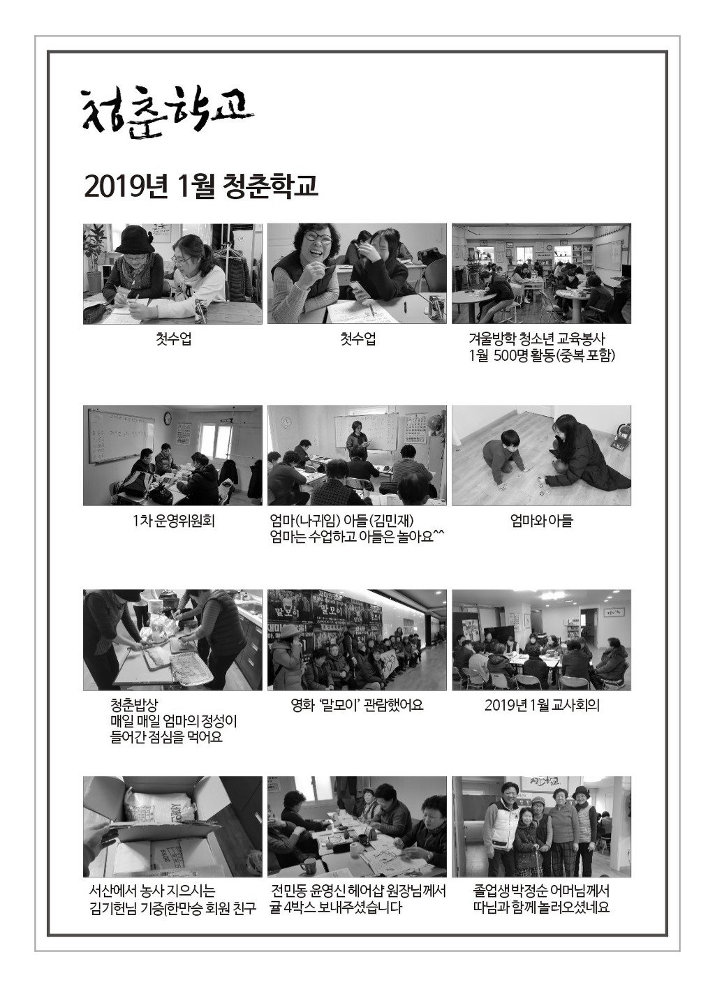 청춘학교 2019년 1월 소식