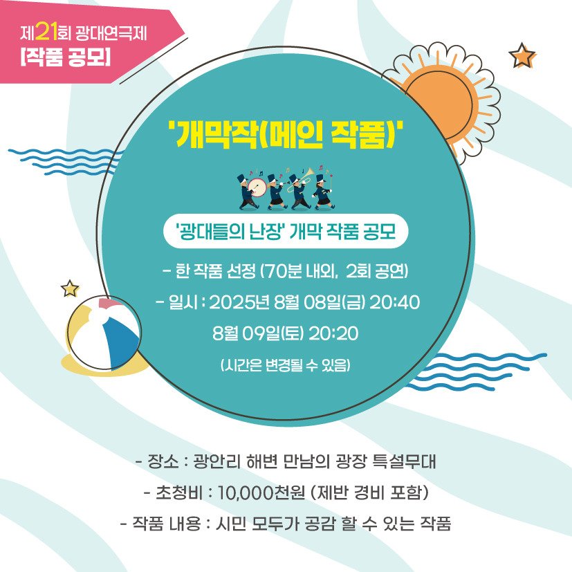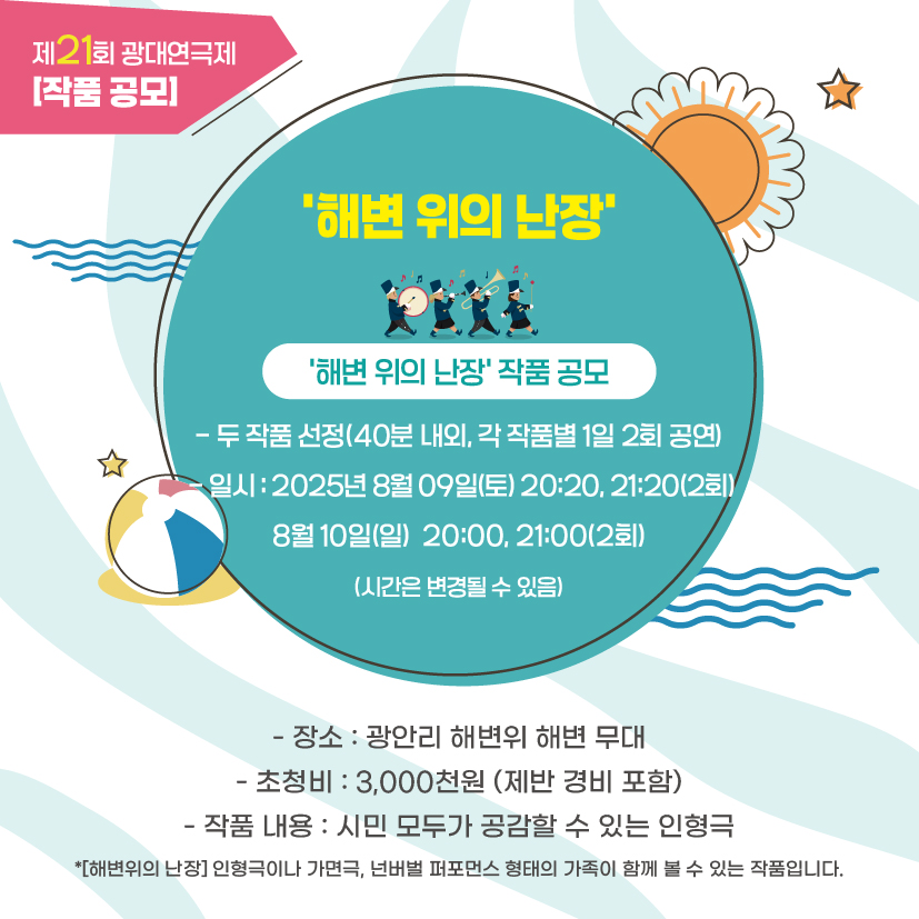 ▶ 해변 위의 난장 (2작품) – 40분 내외, 각 2회 공연 / 초청비: 300만원
