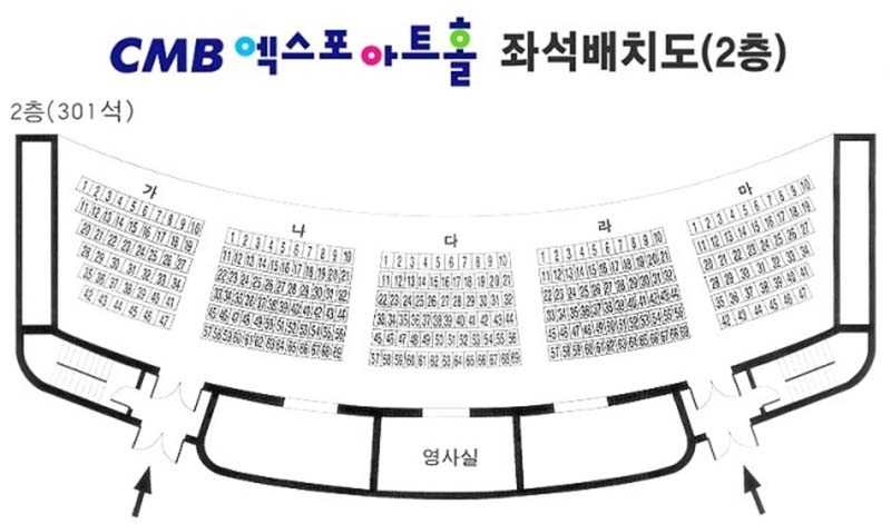 극장개요 : 공연장은 총 244평의 무대와 12개의 Set Batton,무대전환장치 및 남여분장실 각 1실과 영사실,