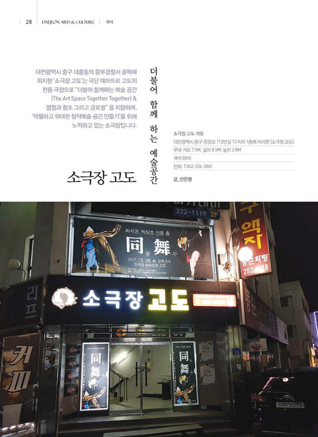 극장개요 : 대전 중구 대흥동(중부경찰서 골목)에 위치한 소극장 떼아뜨르 고도