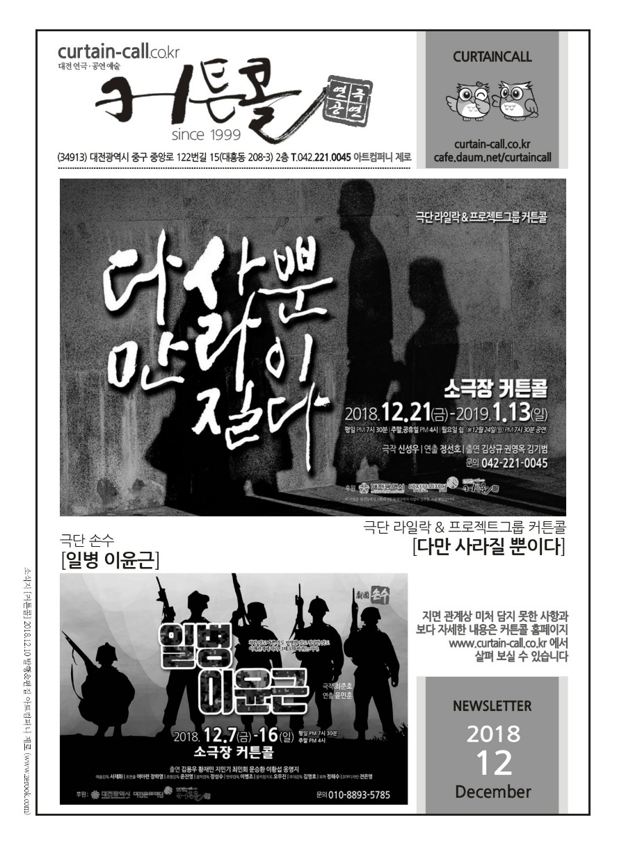 대전연극 대전공연 커튼콜 2018년 12월 소식입니다