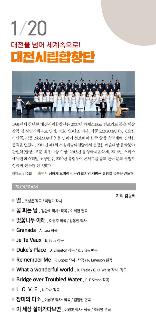 대전시립합창단 '수요브런치 콘서트' 2021년 1월 20일(수)